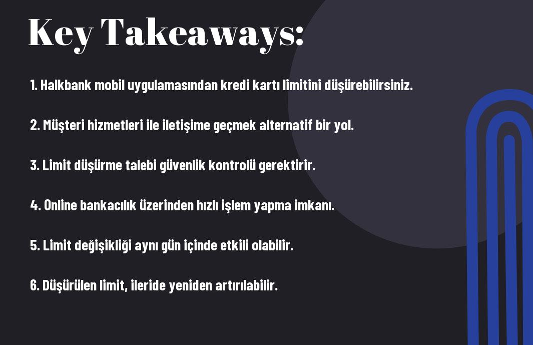 - Halkbank Kredi Kartı Limit Düşürme işlemi, kullanıcının bütçesini yönetmesine yardımcı olabilir.